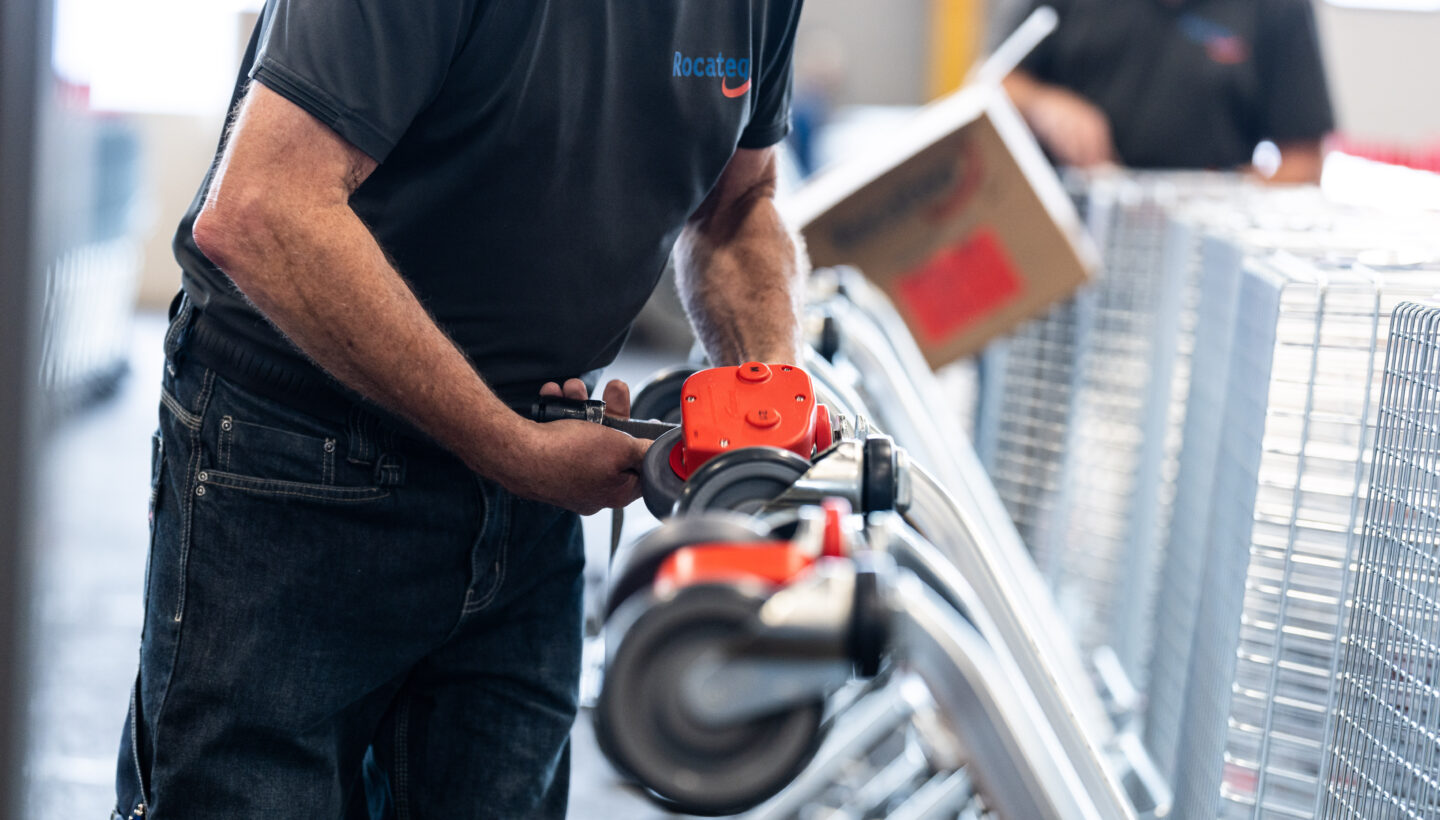 At Rocateq we install security wheels on shopping carts and embedded low voltage cable in store’s parking lot to prevent customers from taking carts outside the perimeter of the parking lot.