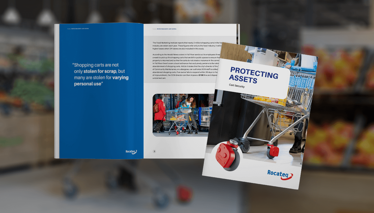 In addition to the security systems mentioned above, shopping cart security also plays a role in preventing theft and loss while contributing to a safe and orderly shopping environment. Systems such as Rocateq’s Cart Security system prevent a shopping cart from going outside a certain area. One of the cart wheels is replaced with the Rocateq wheel that activates a blocking mechanism when the cart goes outside the specified area. A similar system discourages shopping cart theft and enables efficient management of shopping carts, ensuring that they are always available to customers and remain neatly in designated areas.